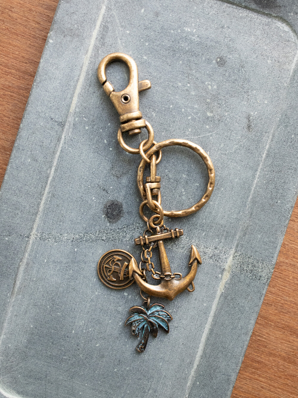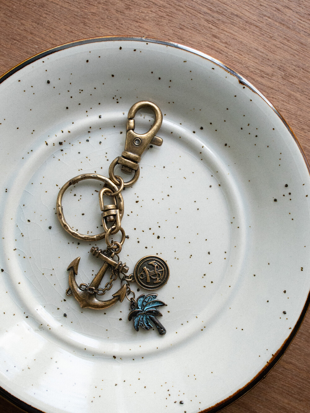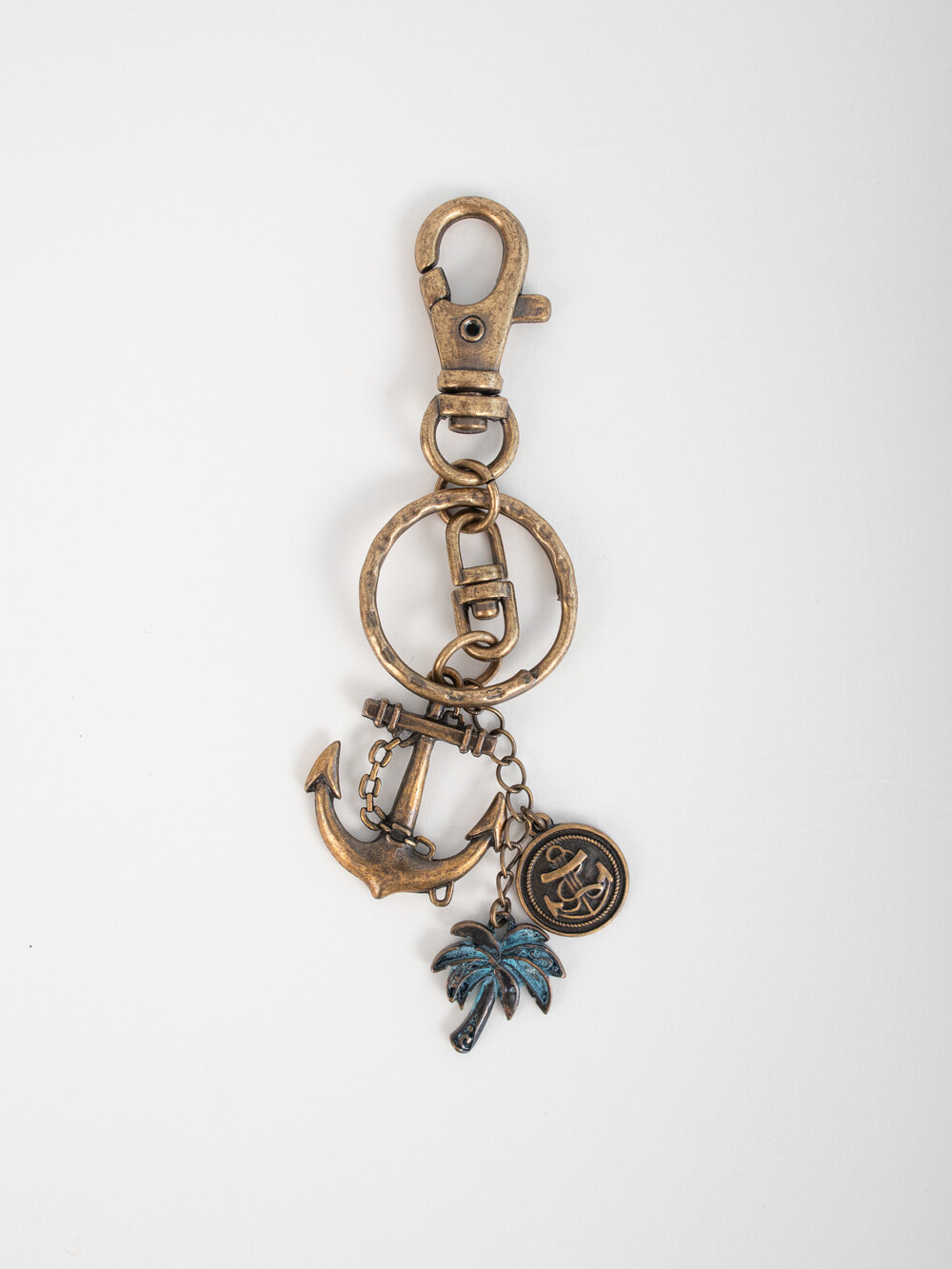 세일러 무드와 하와이 비치를 연상하며 제작된 유니크한 디자인 키링 입니다. 빈티지한 외관을 살리기 위해 골드 버니쉬 처리 되었으며, 다양한 아이템에 포인트로 활용하기 좋은 키링입니다.