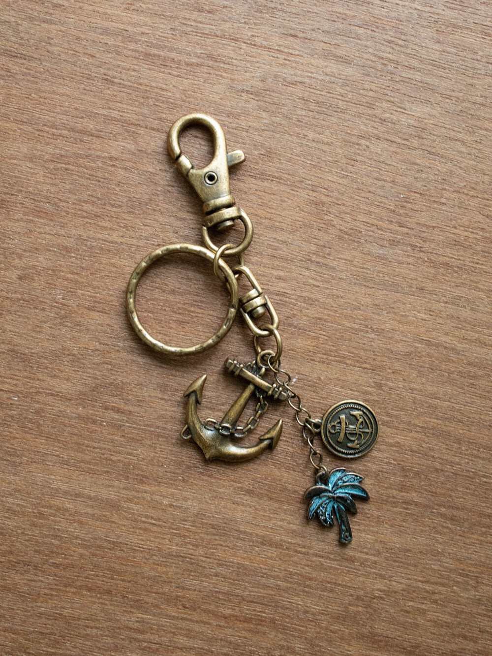 Name : Hawaiian sailor vintage keyringLength : 11cmPendant : Anker 2.5cmWeight : 20gMaterial : Brass/Zink(Gold burnished)