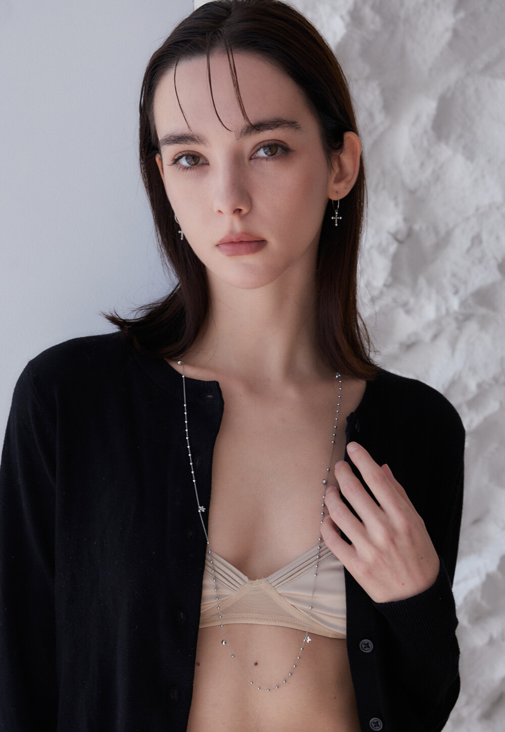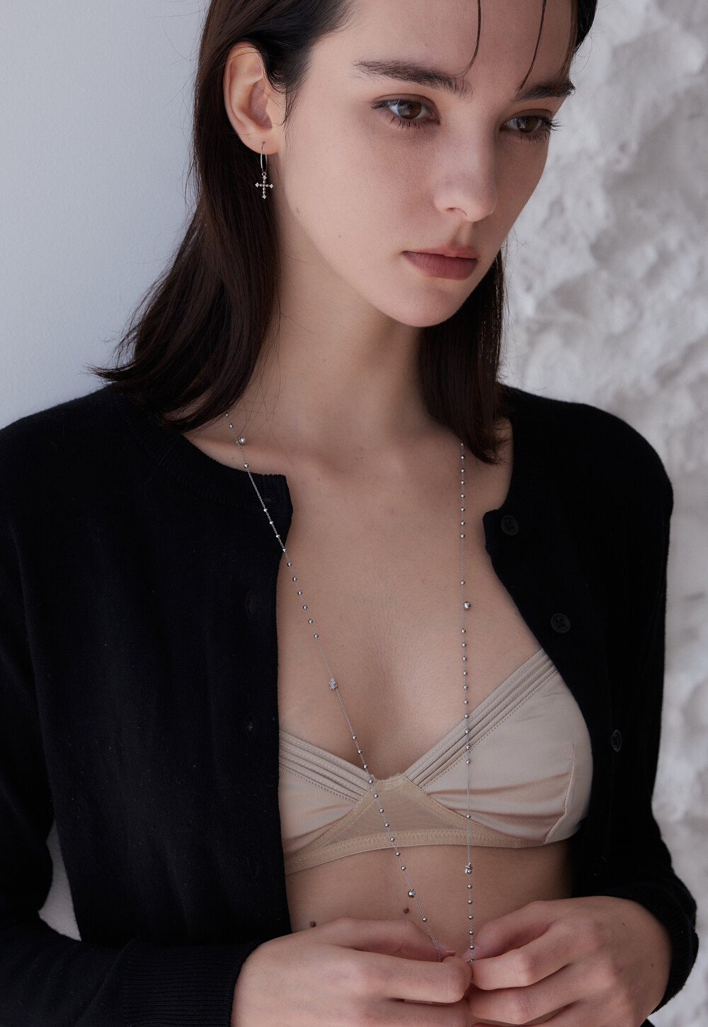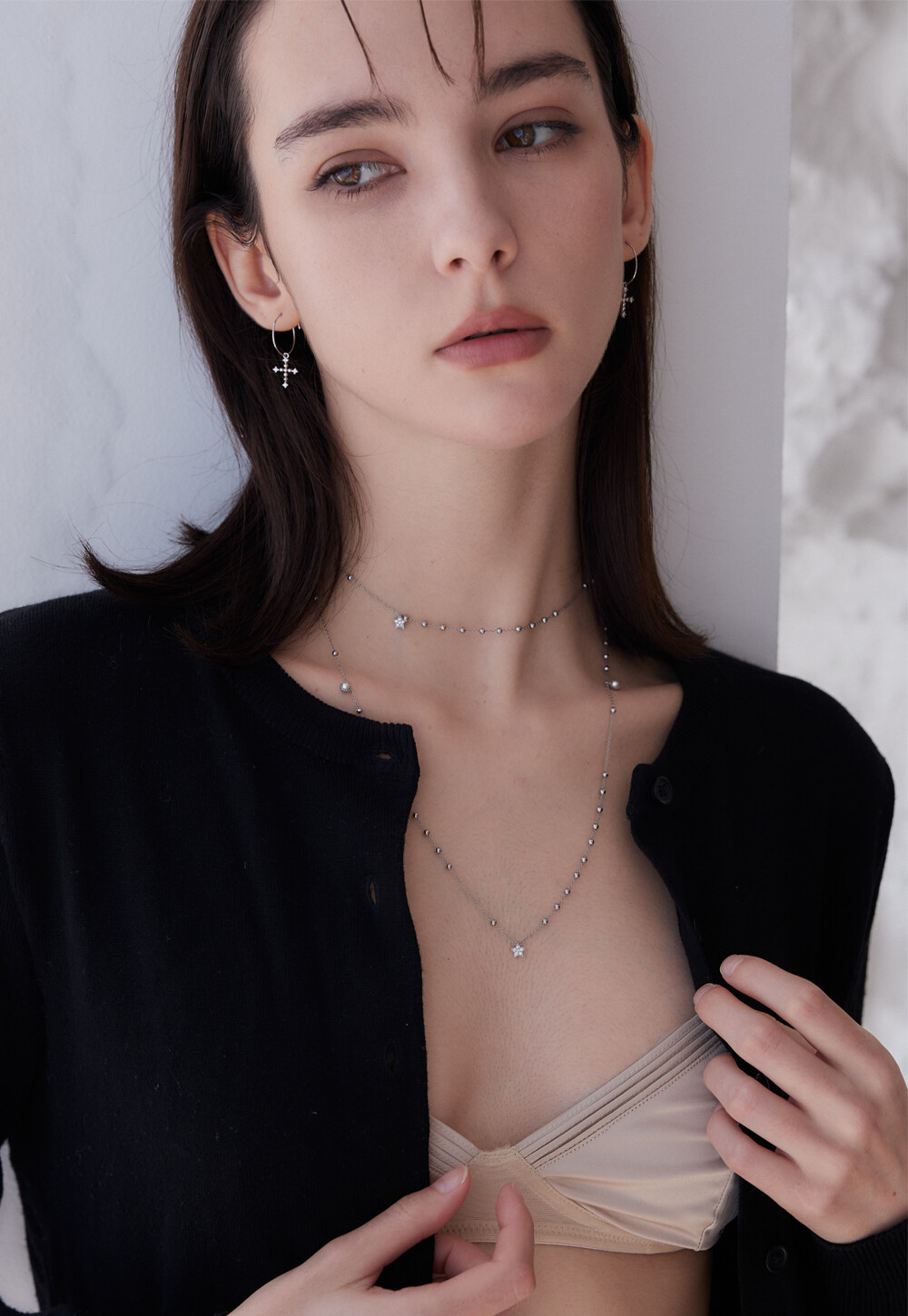 볼 패턴의 체인이 길게 늘어진 롱 디자인의 목걸이. 슬림한 써지컬 볼 체인과 반짝이는 작은 별과 진주 팬던트로 포인트를 준 디자인. 긴 길이의 체인으로 길게 또는 감아서 두줄로도 착용 가능한 2way 스타일. 소장하고 있는 다양한 목걸이와 레이어드하기 좋은 아이템으로 추천합니다.