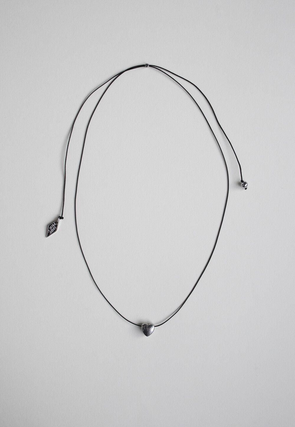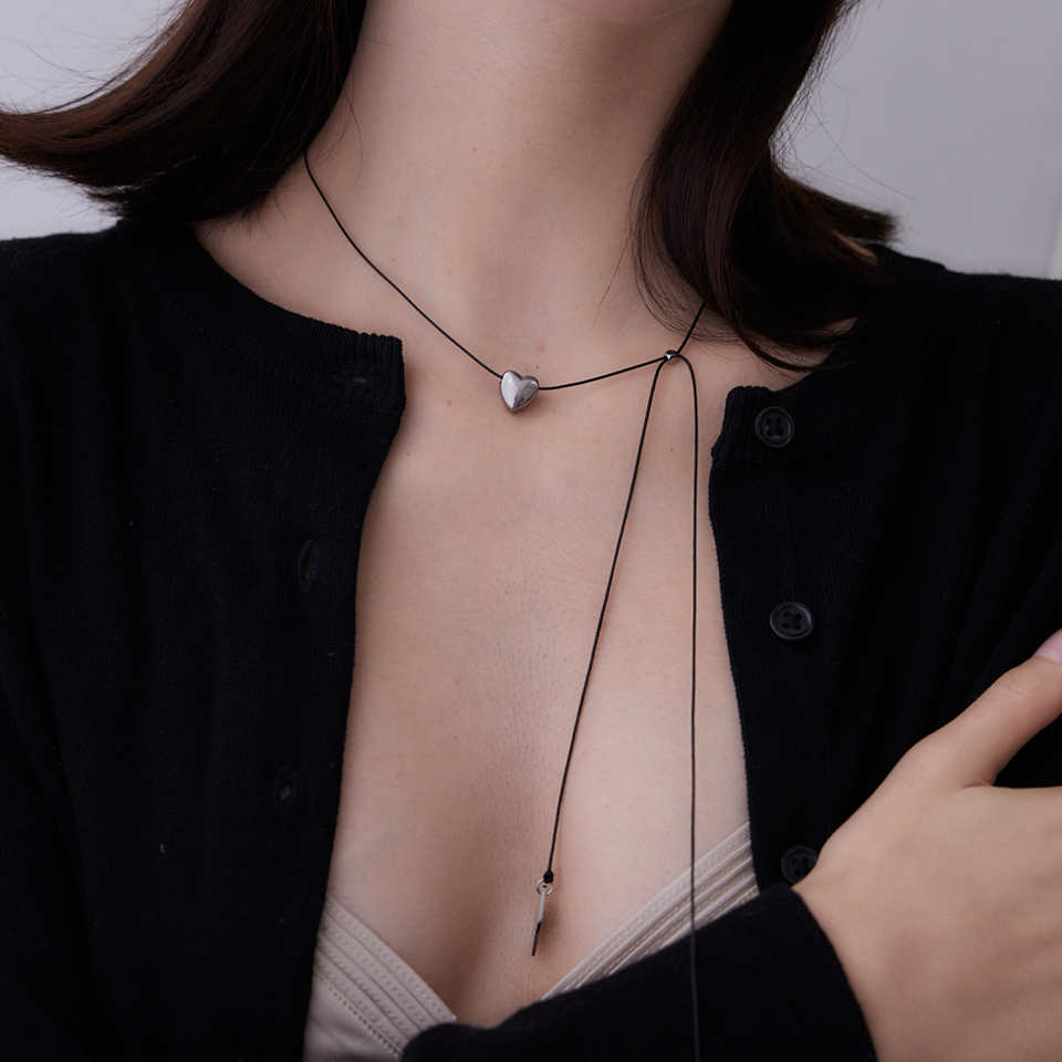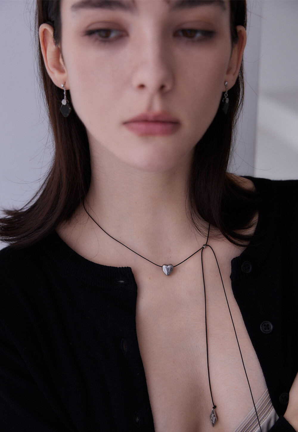 매끈한 블랙 폴리끈과 써지컬 스틸 소재의 하트 팬던트가 매치된 심플하면서도 웨어러블한 디자인의 목걸이 입니다. 길이 조정이 용이해 착용하기 편하며, 어떤 스타일에도 구애받지 않고 연출할 수 있는 아이템 입니다.