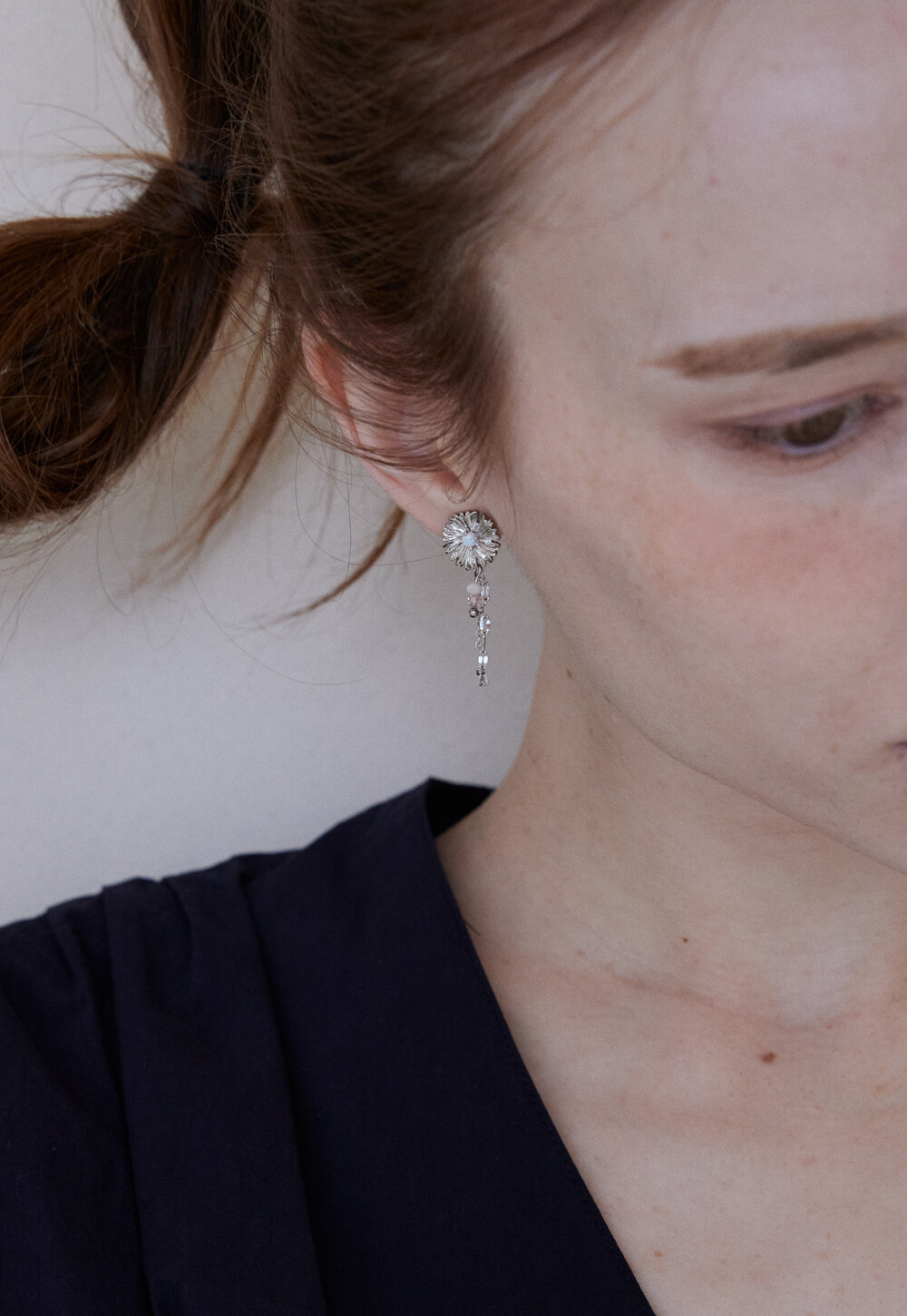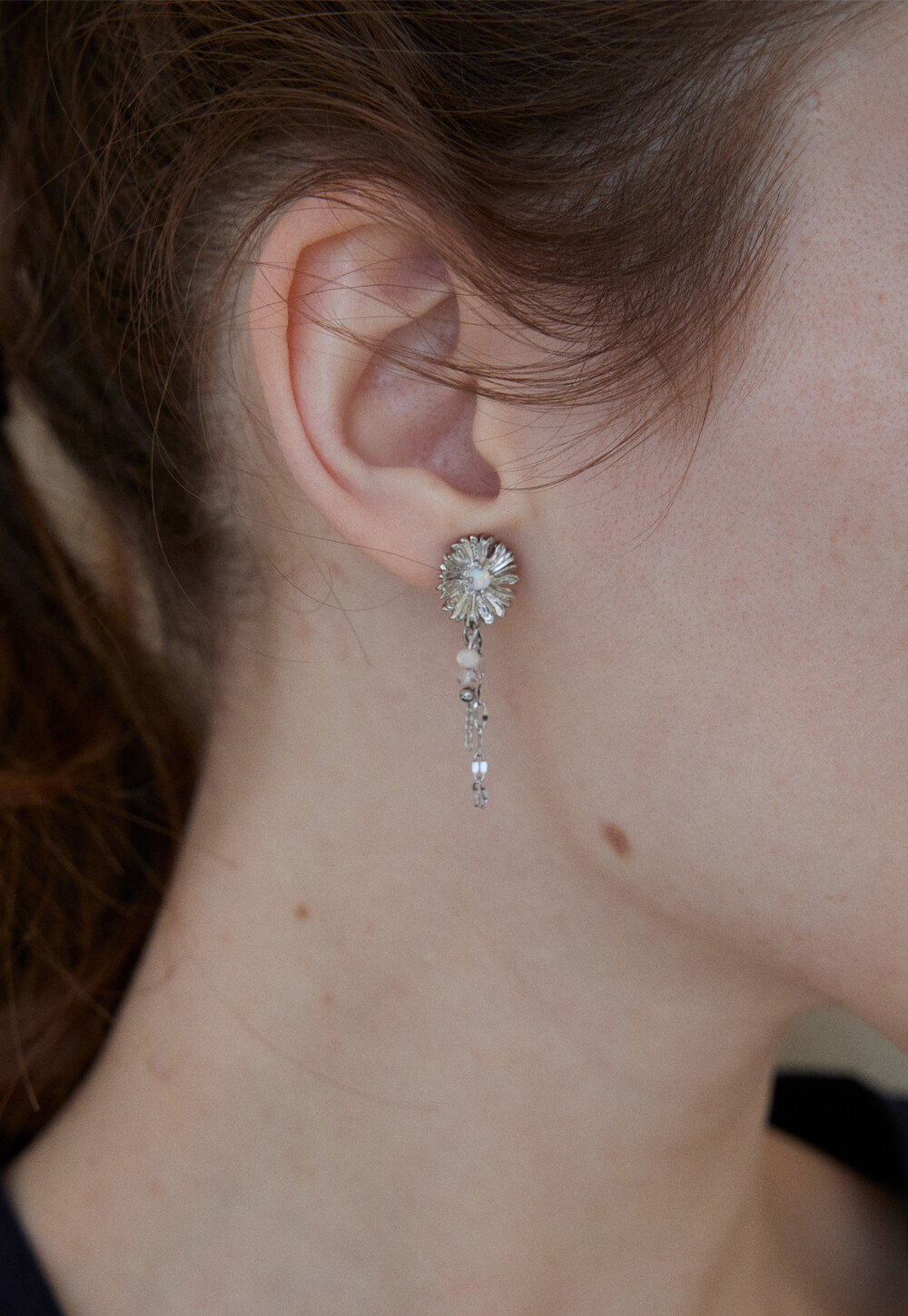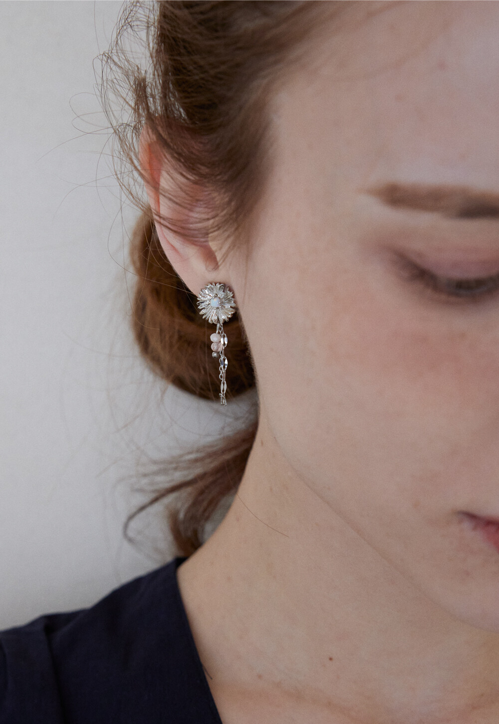 민들레 꽃에서 모티브를 가져온 드롭 형식의 플라워 이어링 입니다. 실버 컬러를 메인으로 연핑크와 오팔 컬러가 매치되어 소프트한 무드를 자아내는 페미닌한 디자인으로 추천 드립니다. 925 은침 소재로 알러지를 예방하고 있습니다.